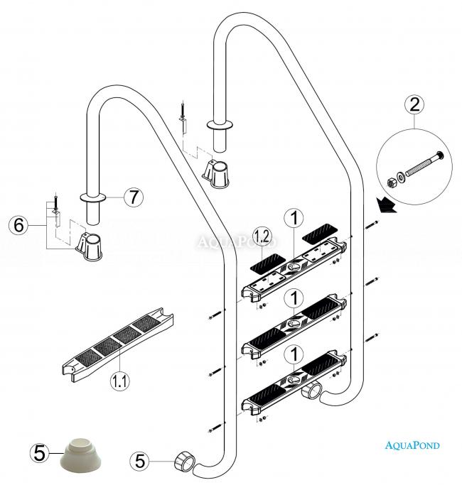 Náhradné diely pre nerezový rebrík Muro (Slim) 3 stupňový s puzdrom, AISI 304