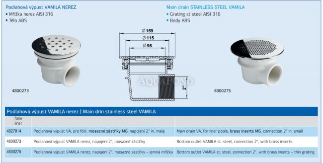 Bazénová výpusť je určená pre betónové fóliové bazény.
