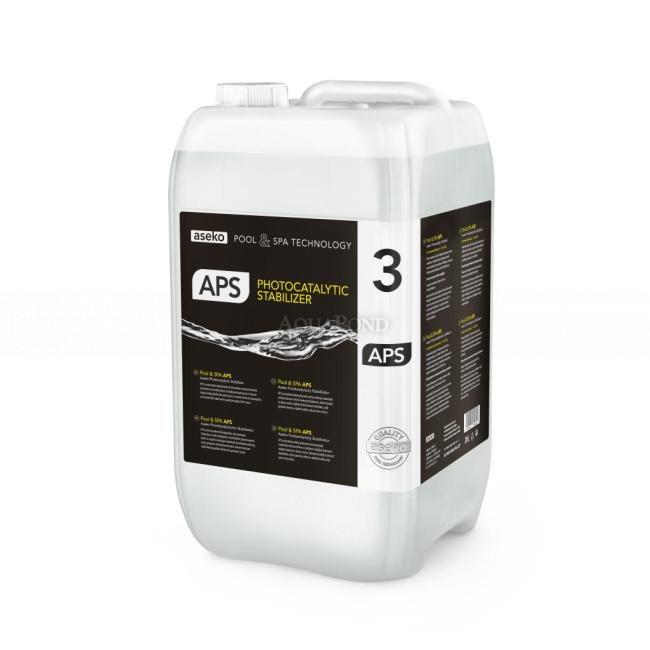APS je fotokatalytický stabilizátor chlóru od firmy ASEKO určený výhradne na použitie s elektrolyzérmi slanej vody využívajúce sondu Aseko CLF . Je navrhnutý pre inštalácie, kde sú kladené vysoké nároky na stabilné a vyššie hodnoty voľného chlóru aj pri intenzívnom využití bazéna, zvýšenej teplote vody a silnom slnečnom žiarení .