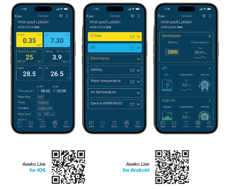 Aplikácia iPool LIVE a iPool Monitor podporujú voľné využitie služby ASEKO Web Services, ktorá umožňuje kompletný prehľad o prevádzke údržby bazéna. Zariadenie vie upozorniť notifikačnou správou o prekročení nastavených hodnot Ph a chlóru v bazéne.