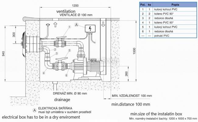 Čelo protiprúdu je vyrobené z bieleho plastu odolného voči štandardnej bazénovej chémii. Smerovo prispôsobiteľná tryska s ovládaním prisávania vzduchu, pneumatické tlačidlo.