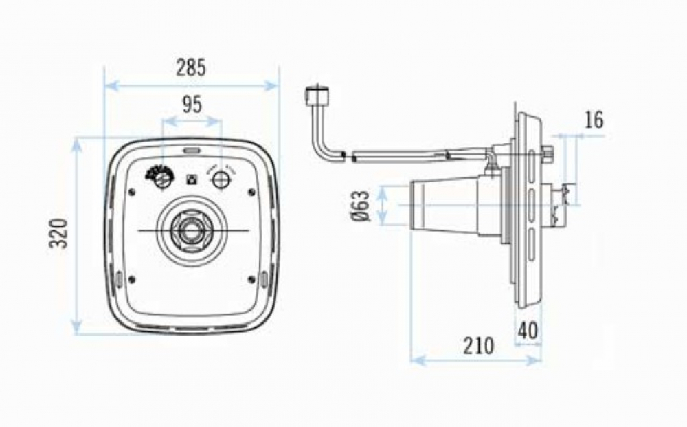 Ozdobný čelný kryt z leštenej nerezovej ocele AISI -316. Obsahuje: trysku s upevňovacími prvkami, pneumatické tlačidlo a ovládač prisávania vzduchu.