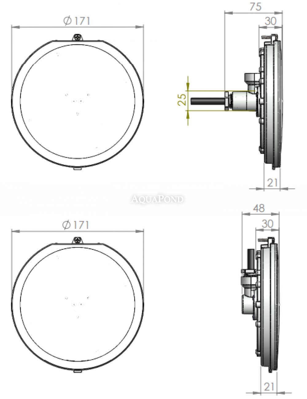 • Vonkajšie rozmery Ø 171 x 48 mm