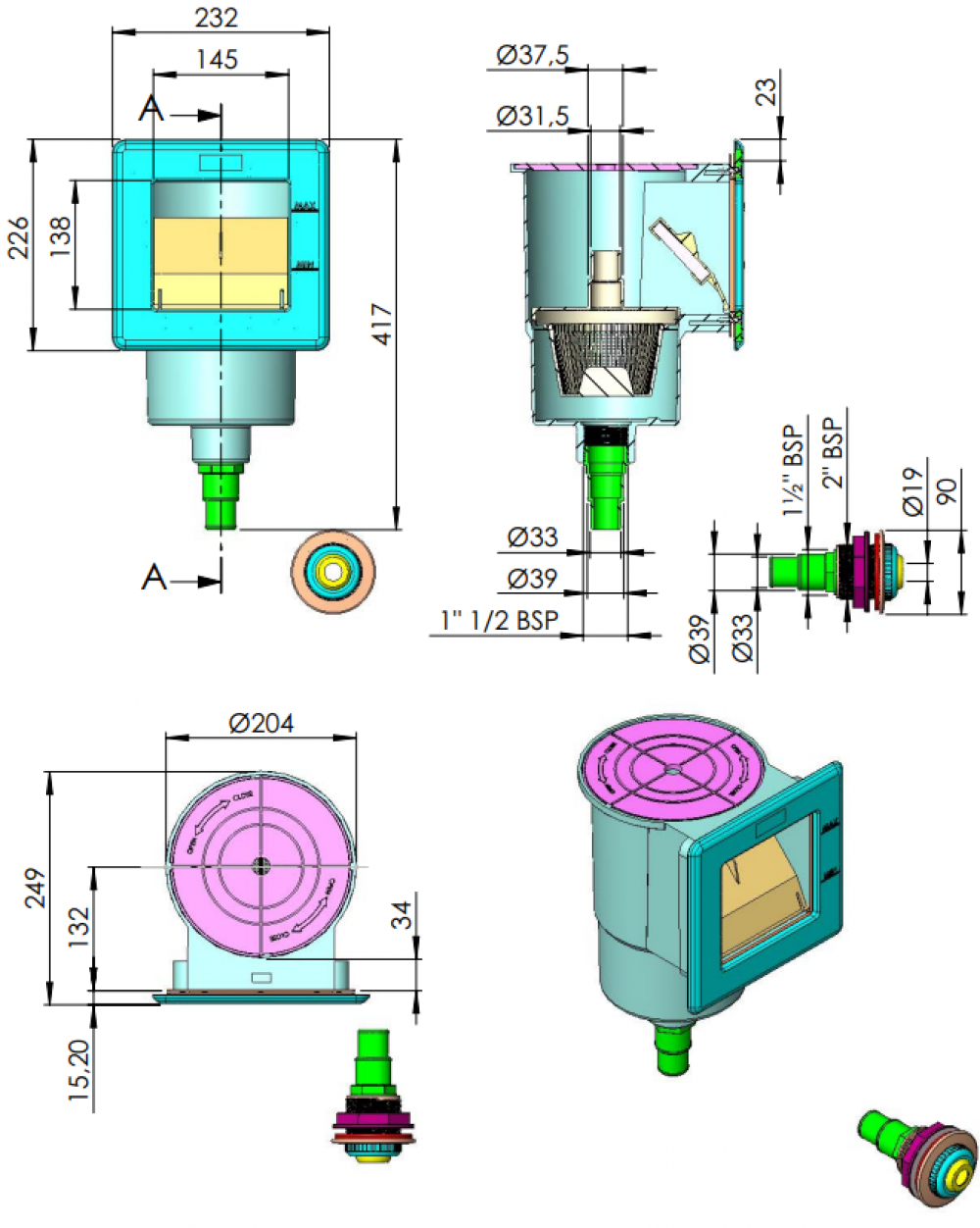 • Otvor: 145 x 138 mm