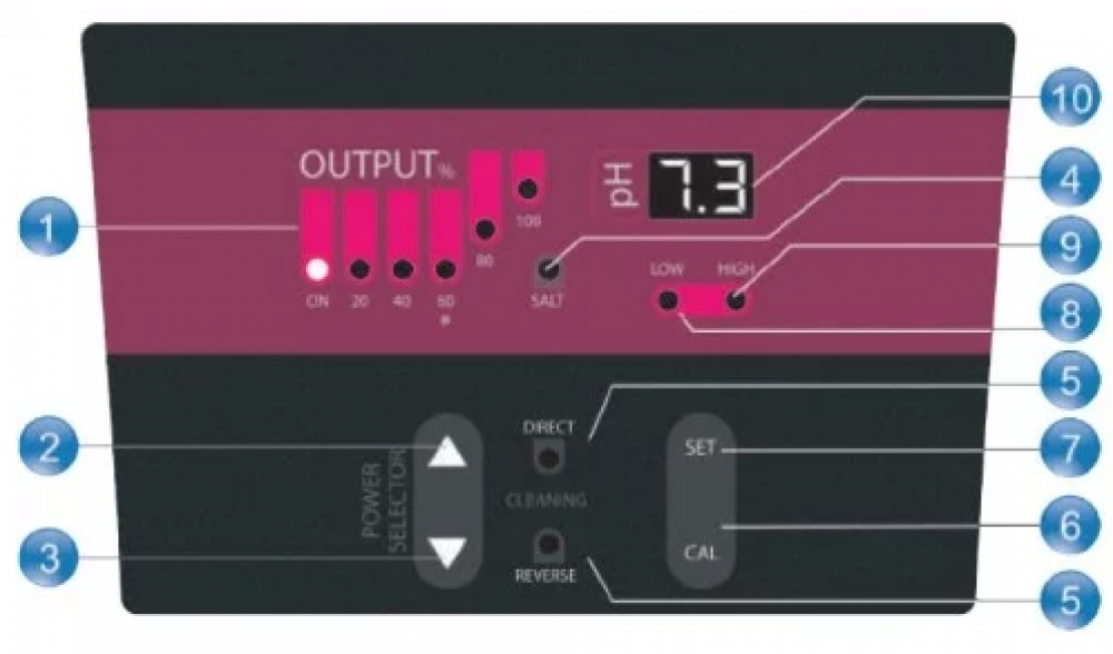 2. Tlačidlo na zvýšenie produkcie chlóru