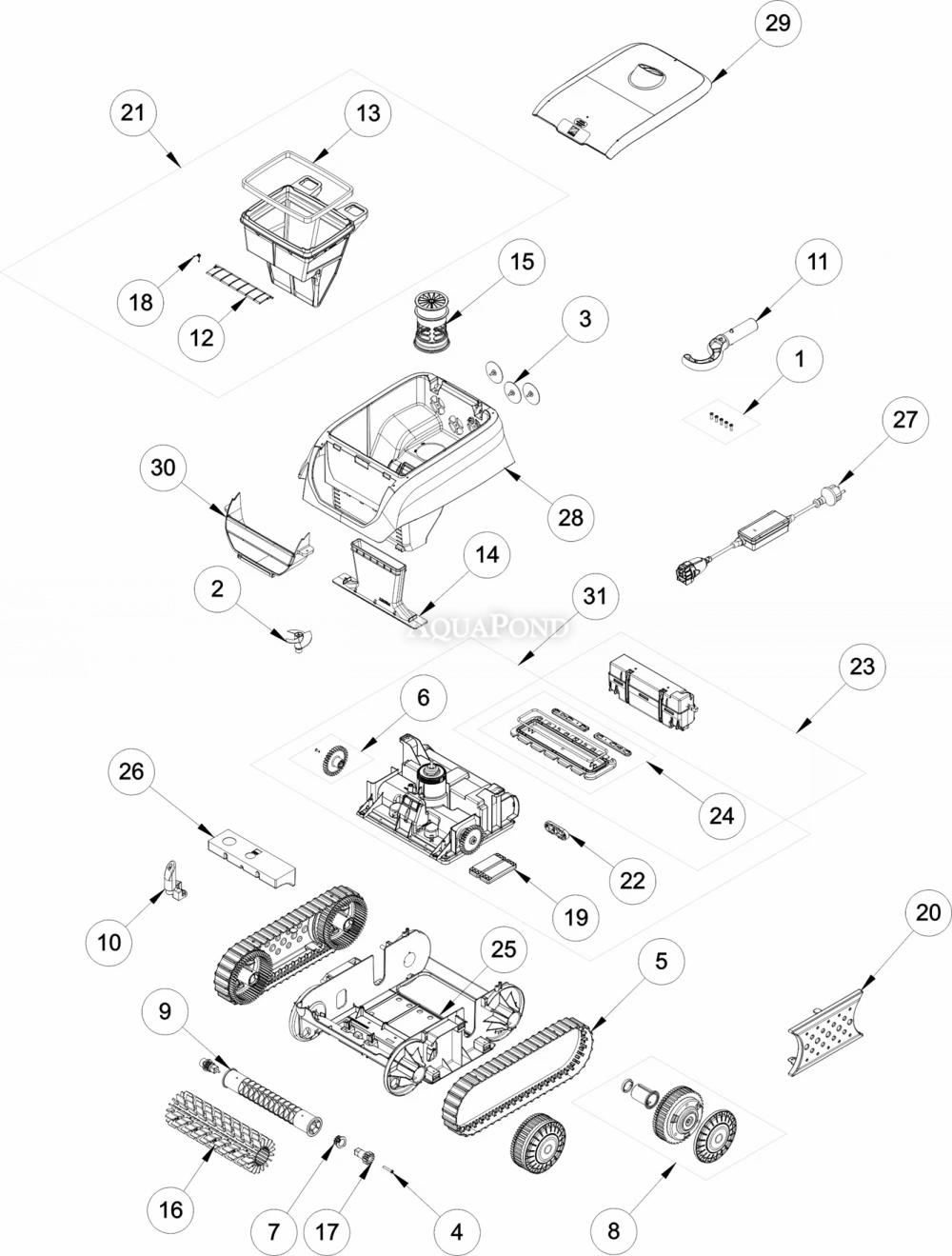 Kompletný zoznam náhradných dielov nájdete tu: Náhradné diely pre automatický batériový vysávač - Zodiac RF 42iQ - FreeRider |
