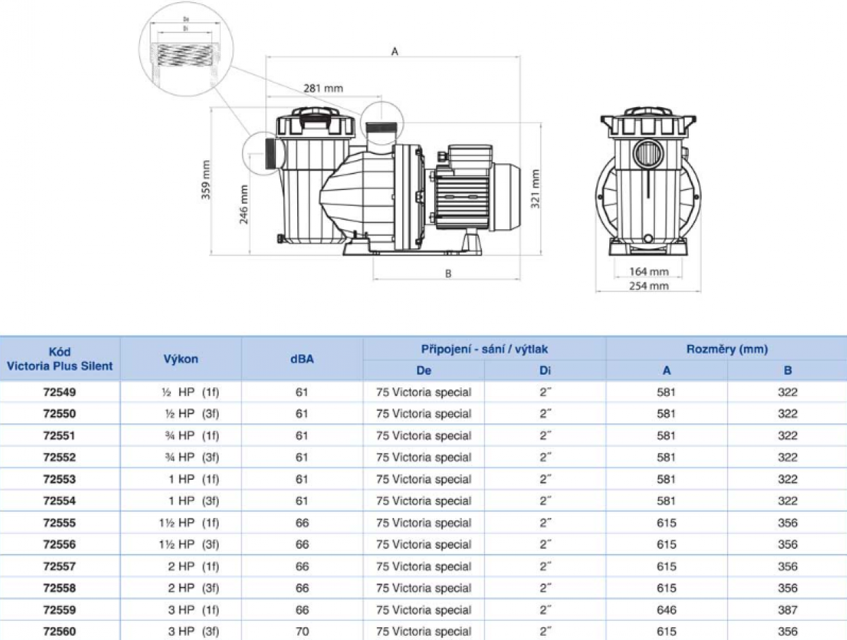 Pri jednofázových čerpadlácha má nadprúdovú bimetalovú ochranu.  Súčasťou dodávky bazénových čerpadiel Nautilus je pripájacie šróbenie na pripojenie na trúbku alebo bazénovú hadicu. Sacie a výtlačné šróbenie 75 / 90 mm.
