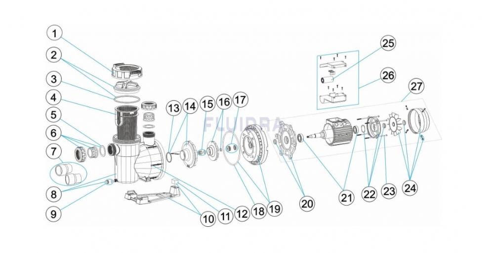 Náhradné diely pre čerpadlo Astralpool Nautilus, 34 m3 / h, 230 / 400 V - kód produktu: 72560