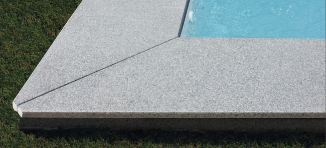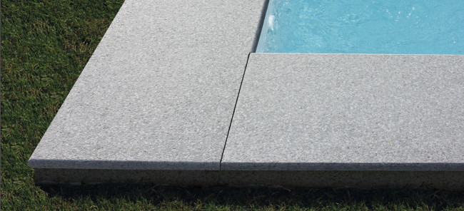 Bazénové lemy zo žuly sú protišmykové, vďaka čomu môžete po okraji bazéna chodiť aj naboso bez rizika pošmyknutia. Má prírodný, mnohokrát stredomorský vzhľad, je robustný a mrazuvzdorný, bezpečný aj pre chôdzu za mokra a farebne stály. Veľkoformátové platne s jednou alebo dvomi pohľadovými hranami z prírodného kameňa. Dlhé rovné platne sú vhodné pre akúkoľvek stavbu bazéna s pravidelnými stenami. Ľahko sa čistí základnými pomôckami. Na údržbu bazénového lemu môžete použiť vysokotlakový čistič.
