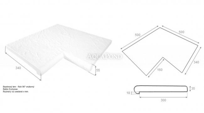 Bazénový lem s nosom Roh 90° vnútorný, betón Exclusive