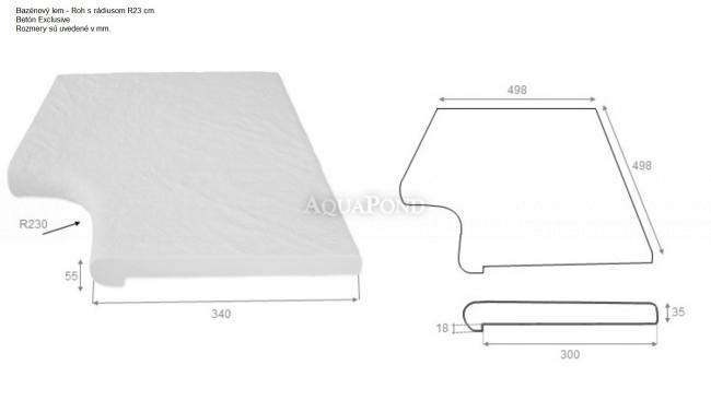 Bazénový lem s nosom - Rohový diel s rádiusom R23 cm vnútorný, betón Exclusive