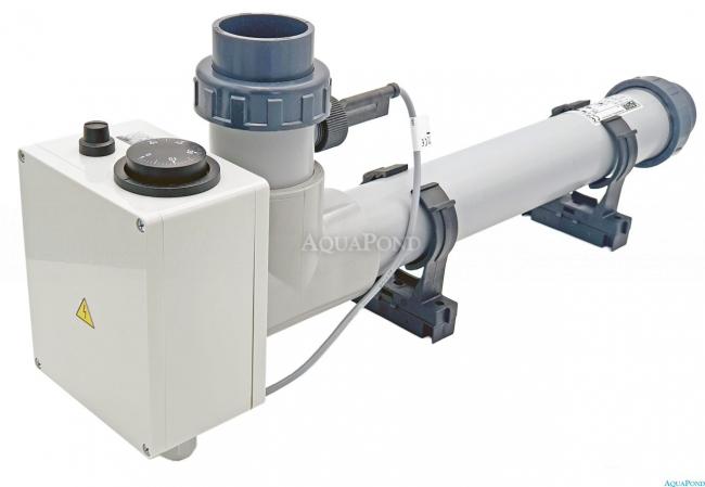 Elektrické prietokové ohrievače sú určené na ohrev vody v bazénoch a vírivých vaniach, činnosť spočíva v ohreve pretekajúcej vody telesom kúrenia, teplota ohrievanej vody je nastavená regulačným termostatom. Vykurovacie teleso je spínané stykačom, ktorý je ovládaný vyššie uvedeným termostatom, bezpečnostným indikátorom prietoku. Z tohto dôvodu je ku kúreniu nutná tzv. veľká automatika - 24 hodinový programátor filtrácie, prúdový chránič (ochrana pred nebezpečným dotykovým napätím), tepelná ochrana motora, stýkač a spínač kúrenie. Celé vykurovacie zariadenie je vyrobené z nerezového materiálu titánu (pre slanú vodu) alebo plastu.