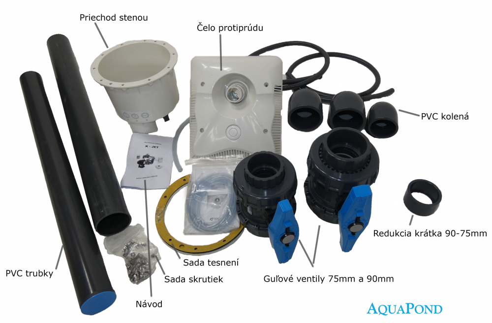 Predmontážna sada nie je kompletné protiprúdové zariadenie. Obsahuje časti protiprúdu K-JET Calipso, ktoré je potrebné zabudovať pri stavbe bazéna. Neobsahuje čerpadlo a el. spínanie protiprúdu, ktoré je možné dokúpiť pred uvedením bazéna do prevádzky.