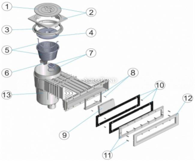 Skimmer (hladinový zberač nečistôt) slúži k odvodu znečistenej bazénovej vody do filtrácie. Vhodné pre fóliové alebo prefabrikované bazény. Vyrobený z odolného ABS plastu. Tento materiál nepodlieha zmenám v dôsledku vystavenia chemickým ani atmosferickým vplyvom. Typ skimmera sa určí podľa konštrukcie bazéna, obsahuje tesnenie s prírubou, vďaka ktorému môžete otvor v bazénovom telese alebo fólii zatesniť. Skimmer má guľaté veko uložené na štvorcovom ráme. Odporúčame inštalovať 1 skimmer na 25 m2 vodnej hladiny bazéna. Možnosť dokúpiť sadu z nerezovej ocele - rámik a upevňovacie šróby pre fóliový a prefabrikovaný bazén.