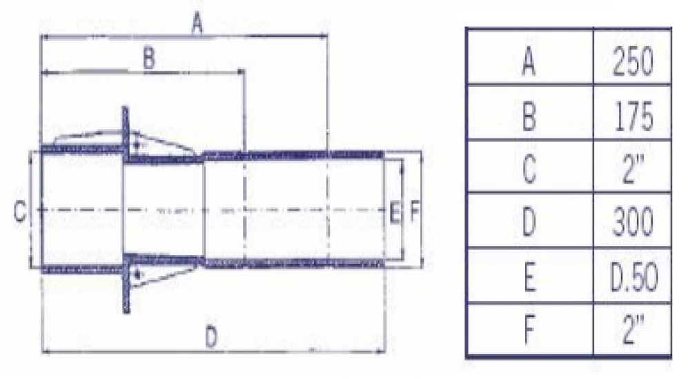 Stenová priechodka pre betónové bazény. Slúži na pripojenie stenovej bazénovej trysky s PVC trubkou alebo hadicou za bazénom. Vďaka použitiu priechodky sa eliminuje možnosť praskania trysiek v prípade posunu stavebného betónu. Pripojenie ku tryskám vnútorným závitom 2". Pripojenie k potrubiu vonkajším závitom 2" alebo vnútorným Ø 50 mm. Prechodky vyrobené z ABS plastu je možné skrátiť na rôzne dĺžky podľa hrúbky steny bazéna.