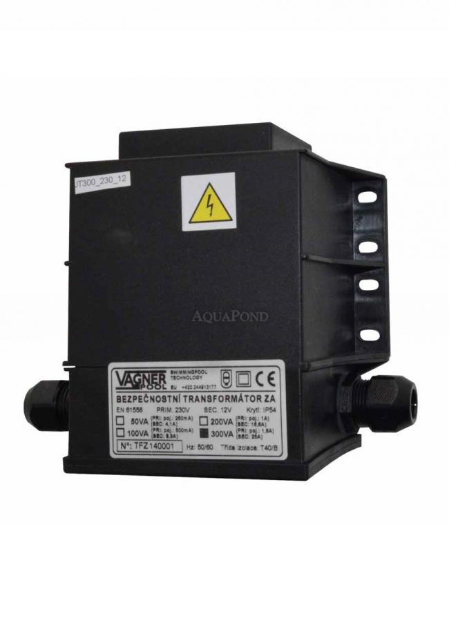Transformátory sú umiestnené v krabičke zo špeciálneho termo-odolného plastu - IP 54. Bazénový transformátor je zaliaty v ochrannej izolácii pripravený k okamžitému pripojeniu. Transformátor je umiestnený v hornej časti čiernej skrine, v spodnej časti sú svorky na zapojenie káblov. Je možné ho použiť pre jedno svetlo do 80 W, alebo pre viac svetiel, ktoré majú celkový príkon do 80 W. Čierna skrinka má po bokoch otvory na prišróbovanie na stenu.