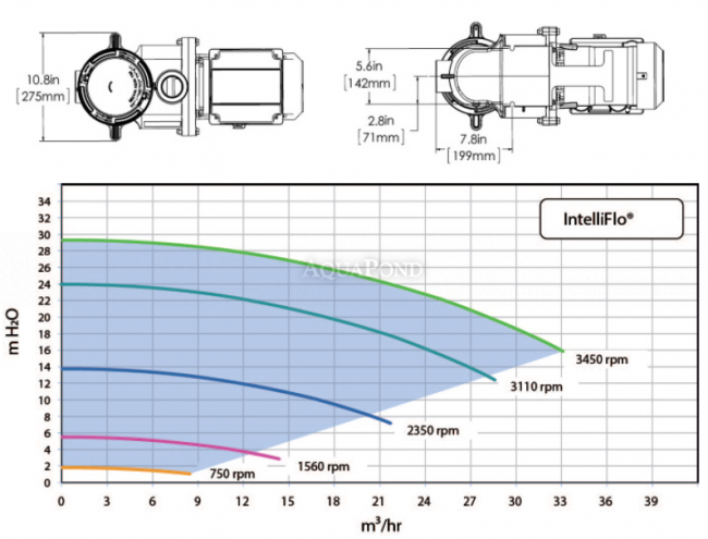 Čerpalo IntelliFlo VSF s voliteľnými otáčkami a prietokom, možnosť naprogramovať optimálnu rýchlosť čerpadla pre špecifické úlohy – filtrácia, ohrev, pranie filtra, atrakcie, atď. Prelomová inovácia prinášajúca novú technológiu významne znižujúca energetické náklady a poskytujúcu mnoho ďalších výhod. Možnosť ušetriť až 90 % nákladov na energie v porovnaní s jednorýchlostnými alebo dvojrýchlostnými čerpadlami. Možnosť prepojenia so systémom riadenia IntelliComm / IntelliPool – inteligentné riadenie bazénovej technológie a atrakcií. S IntelliFlo môžete pridávať zariadenia a funkcie bez výmeny čerpadla. IntelliFlo môže upraviť výkon vodných atrakcií podľa Vašich prianí.