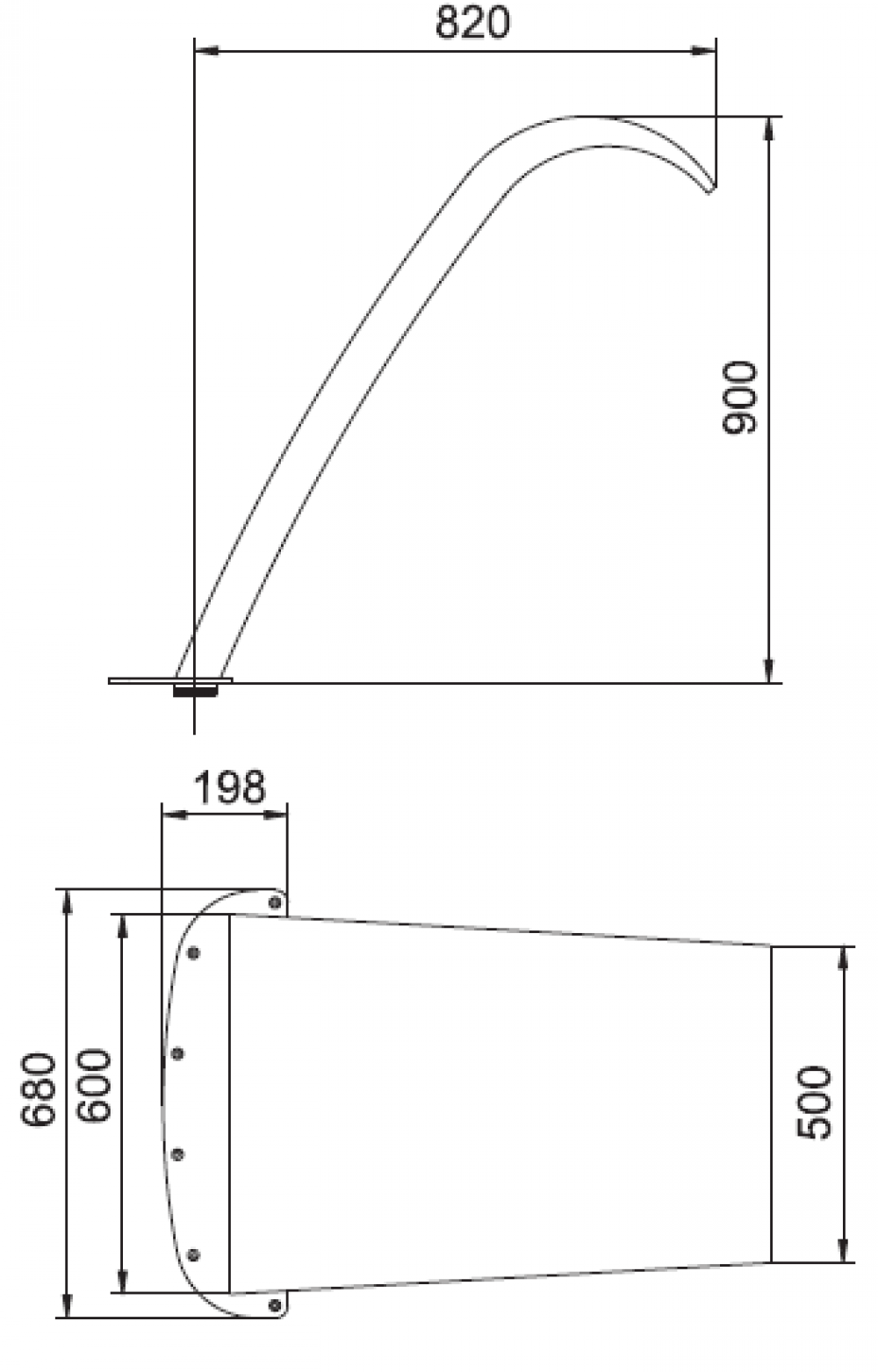 Chrlič Luxe šírka 600 mm, výška 800 mm, z leštenej nerezovej ocele AISI 316