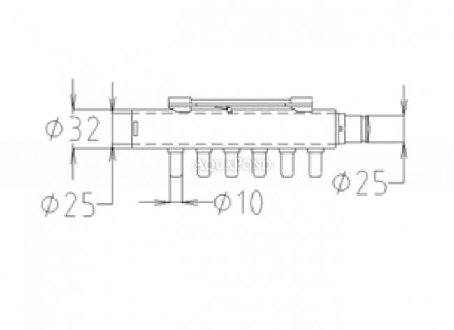 Distributor vzduchu výstup 6 x 10 mm, vstup 32 mm.