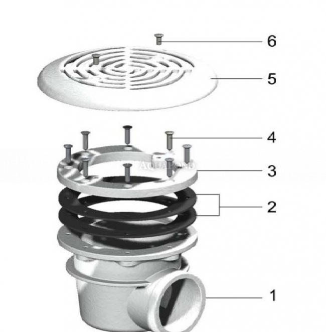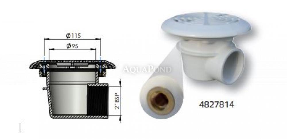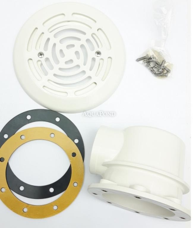 Bazénová výpusť je určená pre betónové fóliové bazény. Je vyrobená z bieleho ABS plastu odolného voči UV žiareniu s mriežkou pripevnenou k prírube. Mriežka a príruba je upevnená pomocov šróbov s mosadznými závitmi, čo predlžuje životnosť a zvyšuje pevnosť tesniacich dielov.