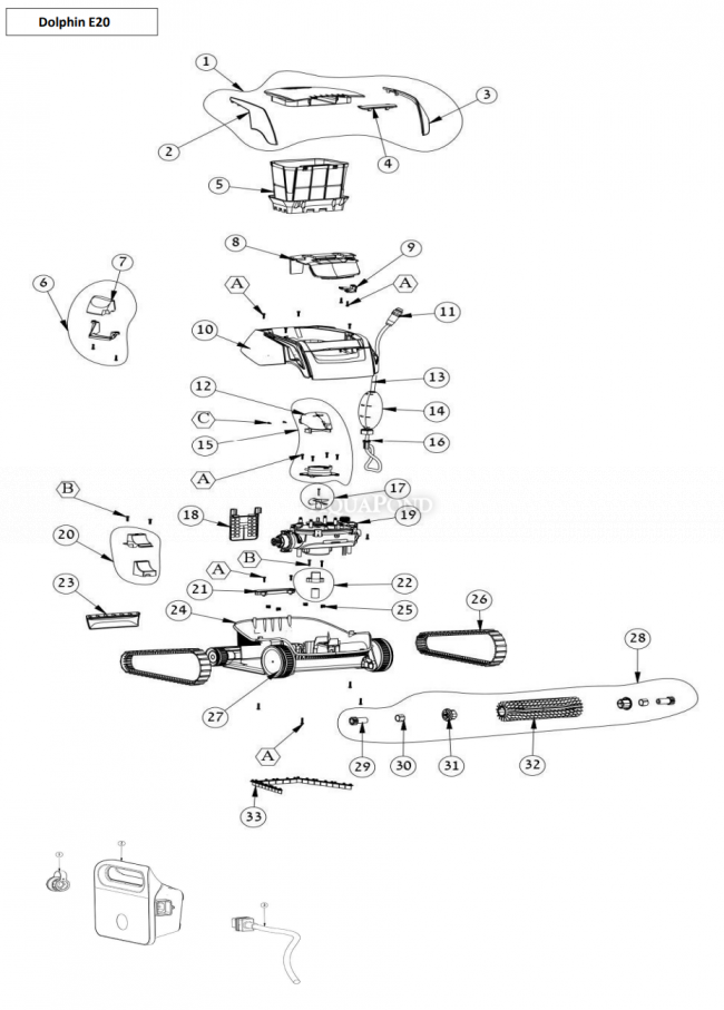 Náhradné diely pre bazénový vysávač Dolphin E20 - kód produktu: dole20