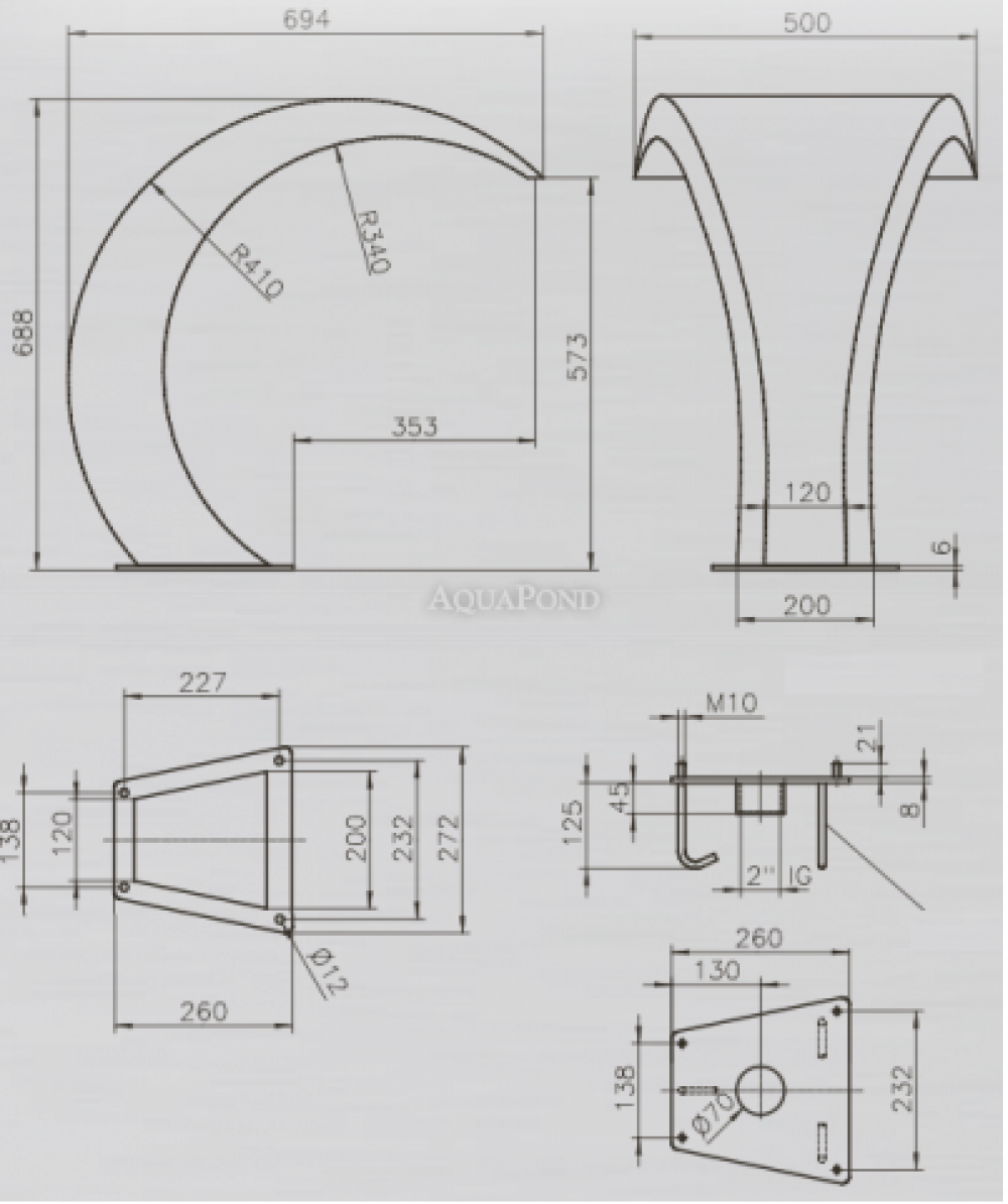 Jedná sa o doplnok k bazénu - chrlič vody patrí k obľúbeným vodným atrakciám, ktorý tvorí efektný vodopád. Z nerez ocele AISI-316. Chrliče sa umiestňujú na okraj bazéna, prepájajú sa pomocou samostatného cirkulačného okruhu. Výkon čerpadla je nutné voliť v závislosti na veľkosti otvoru chrliča, vzdialenosti a záhybov potrubia a očakávanej intenzity prúdu vody. Upevnenie k podlahe pomocou skrutiek a hmoždiniek. Sú dve možnosti, ako zapínať bazénový chrlič: nástenným vypínačom osadeným na stene v hale bazéna alebo spínačom osadeným priamo na stene vnútri bazéna. Pripojenie s vnútorným závitom 2˝. Sanie, čerpadlo a elektrickú skrinku treba zakúpiť osobitne.