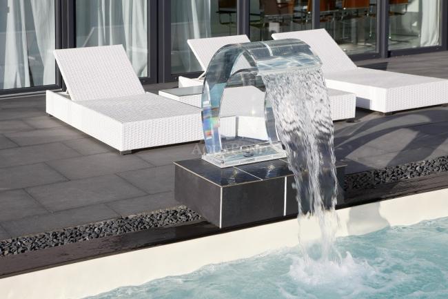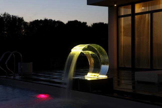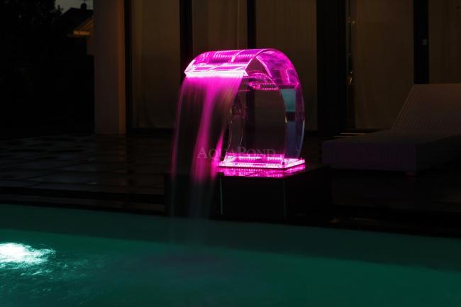 Priehľadný, ľahký a mimoriadne elegantý. Chrlič TROPIC je proste dizajnová špička. Je vyrobený z číreho akrylového skla a poskytuje krásny pohľad na tečúci prúd vody. Vďaka svojmu vzhľadu bude takým dominantným prvkom pri bazéne a v záhrade, ktorý pritiahne všetky pohľady. Jasné štruktúry a pevné akrylové sklo spolu vytvárajú krásnu jednotu. Integrované LED / RGB svetlá vám vytvoria po súmraku ohňostroj farieb, ktorý môžete ovládať pomocou diaľkového ovládania.