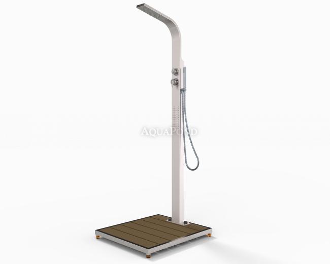 Výhodou záhradnej sprchy Helena je veľký základový rošt, ktorý je vyrobený z nerezovej ocele (rám) a WPC (zmes dreva a plastu, vnútorná časť), ktorá imituje drevo. Materiál WPC vyniká svojou vysokou odolnosťou voči vplyvom počasia.