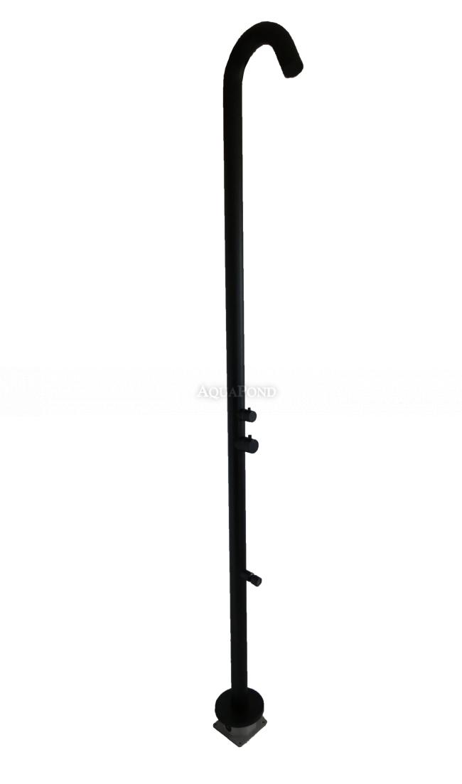 Záhradná sprcha s prívodom na studenú a teplú vodu. Sprcha Lago di Garda Vás zaujme na prvý pohľad svojou chladnou eleganciou, kvalitným materiálom a jednoduchou montážou. Celá sprcha je čierno lakovaná nerezová oceľ V2A (práškové lakovanie), ktorá zaručuje dlhú životnosť. Tento materiál je najvhodnejší na vonkajšie použitie. Prepínačom je možné ovládať medzi hlavovou a nožnou sprchou a pomocou batérie nastavíte požadovanú teplotu. Je vhodným doplnkom všetkých typov rodinných bazénov, výhodným, lacným a pohodlným zdrojom teplej úžitkovej vody v rekreačných objektoch, v záhradkárskych kolóniách, u malých športových zariadení a v záhradách rodinných domov.