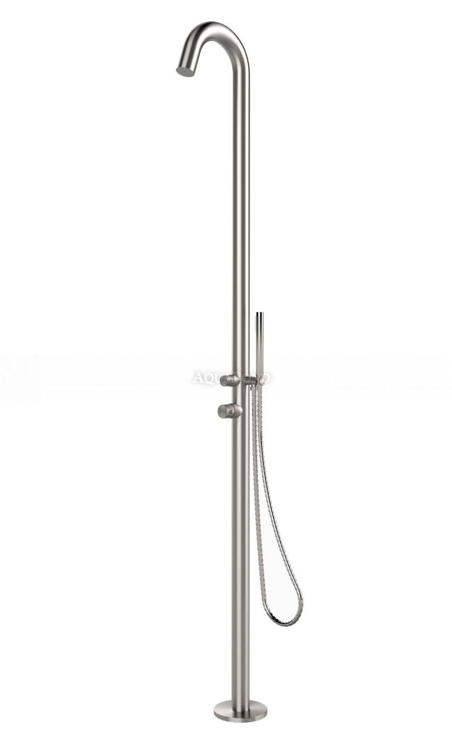 Záhradná sprcha s prívodom na studenú a teplú vodu. Sprcha Sylt vás zaujme na prvý pohľad svojou chladnou eleganciou, kvalitným materiálom a jednoduchou montážou. Sprcha, hlavica, prakticky úplne celá sprcha je vyrobená z kvalitnej nehrdzavejúcej nerezovej ocele. Vodu ovládate pákovou zmiešavacou batériou.
