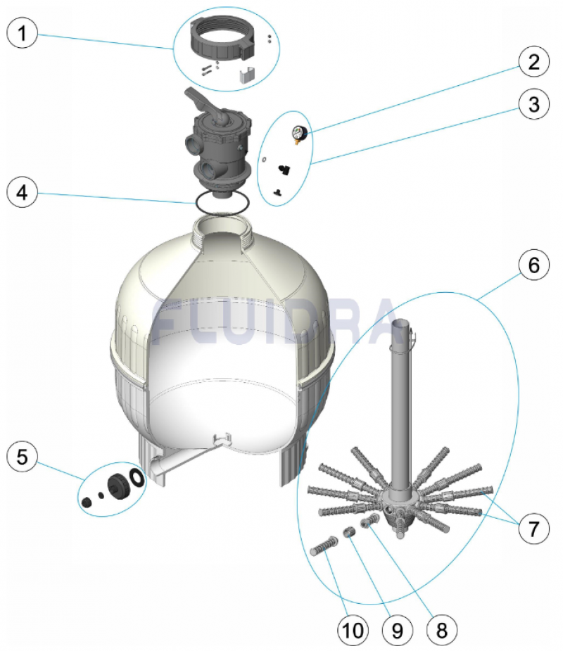 Náhradné diely pre filter Cantabric so šesťcestným ventilom "Klasik Top" - 750 mm, 21 m3/h