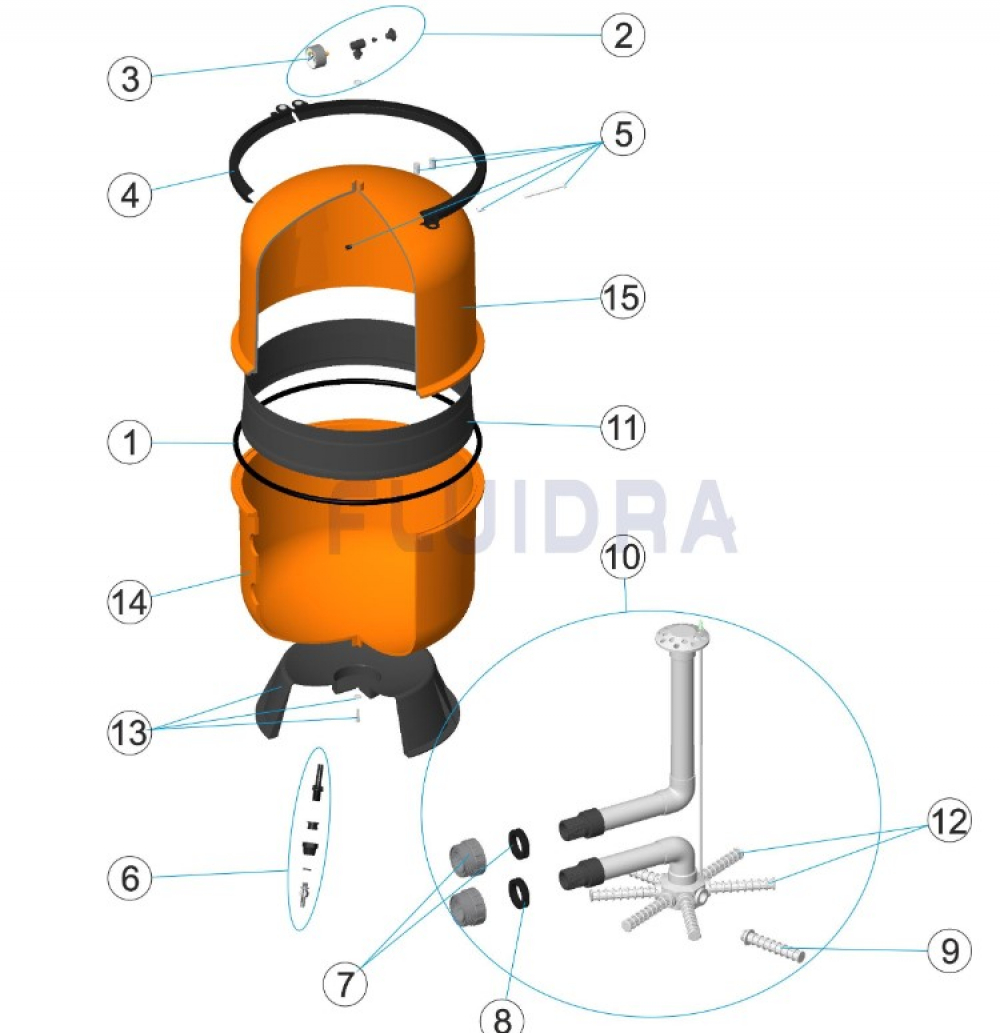 Náhradné diely pre filtračnú nádobu - Bilbao delený filter 500, 9 m3 /h - kód produktu: 04592