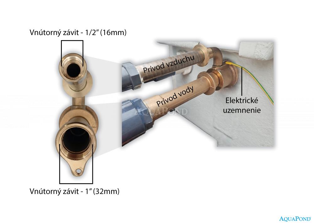 VSTAVANÉ PUZDRO je vyrobené z odolného antikorózneho bronzu. Má špeciálny otvor na vstrekovanie vzduchu. Pripája sa k hydromasážnym tryskám 8669221 a 8669421.