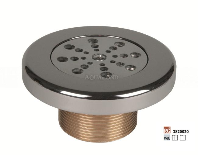 VSTUP je vyrobený z odolnej kyselinovzdornej nehrdzavejúcej ocele AISI 316L a antikorózneho bronzu. Vďaka špeciálnej konštrukcii rotačnej trysky je možné regulovať prietok hydromasážnej vody otváraním alebo zatváraním otvorov.