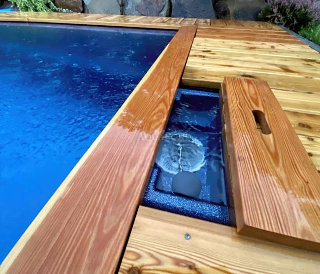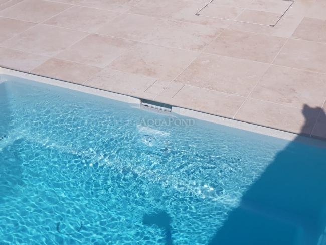 Bazén s integrovaným skimmerom má hladinu vody 3-5 centimetrov od hornej hrany bazéna. Pri bazénoch s bežným skimmerom je to 10-15 cm. Integrovaný skimmer je súčasťou výroby samotného bazéna.