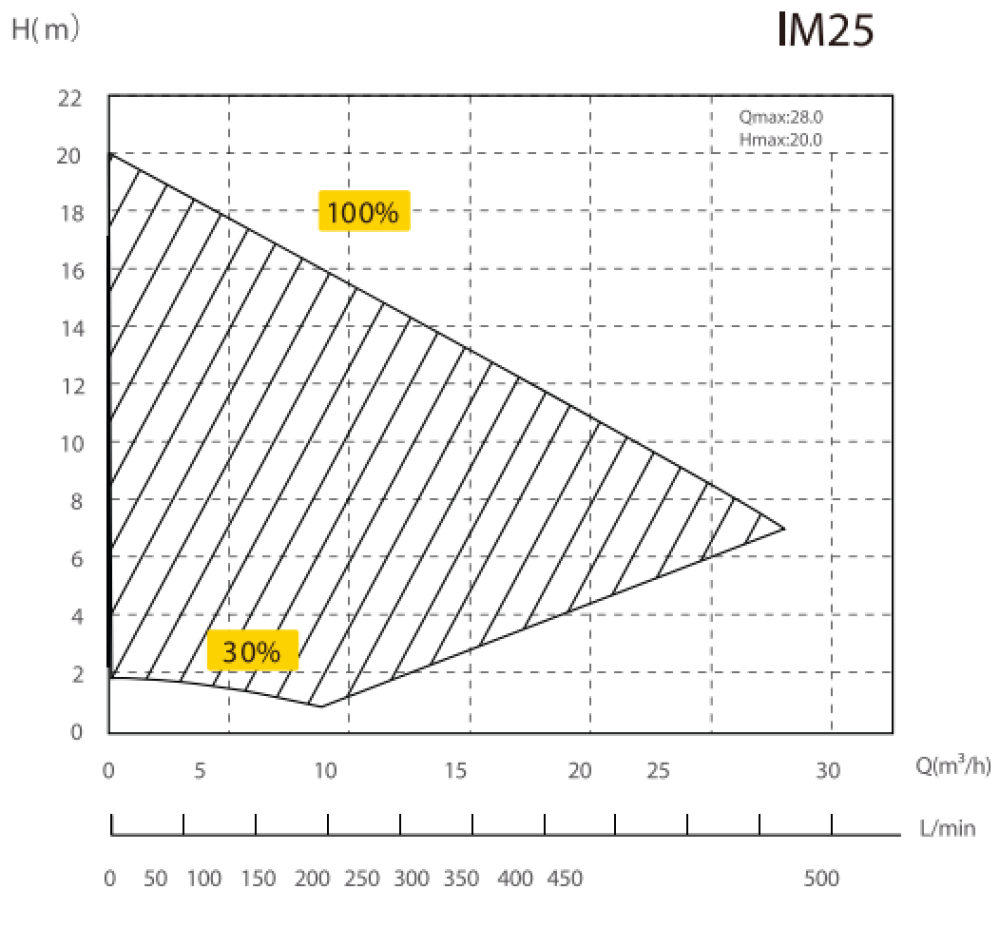 - Prietok: 28 m3 / h