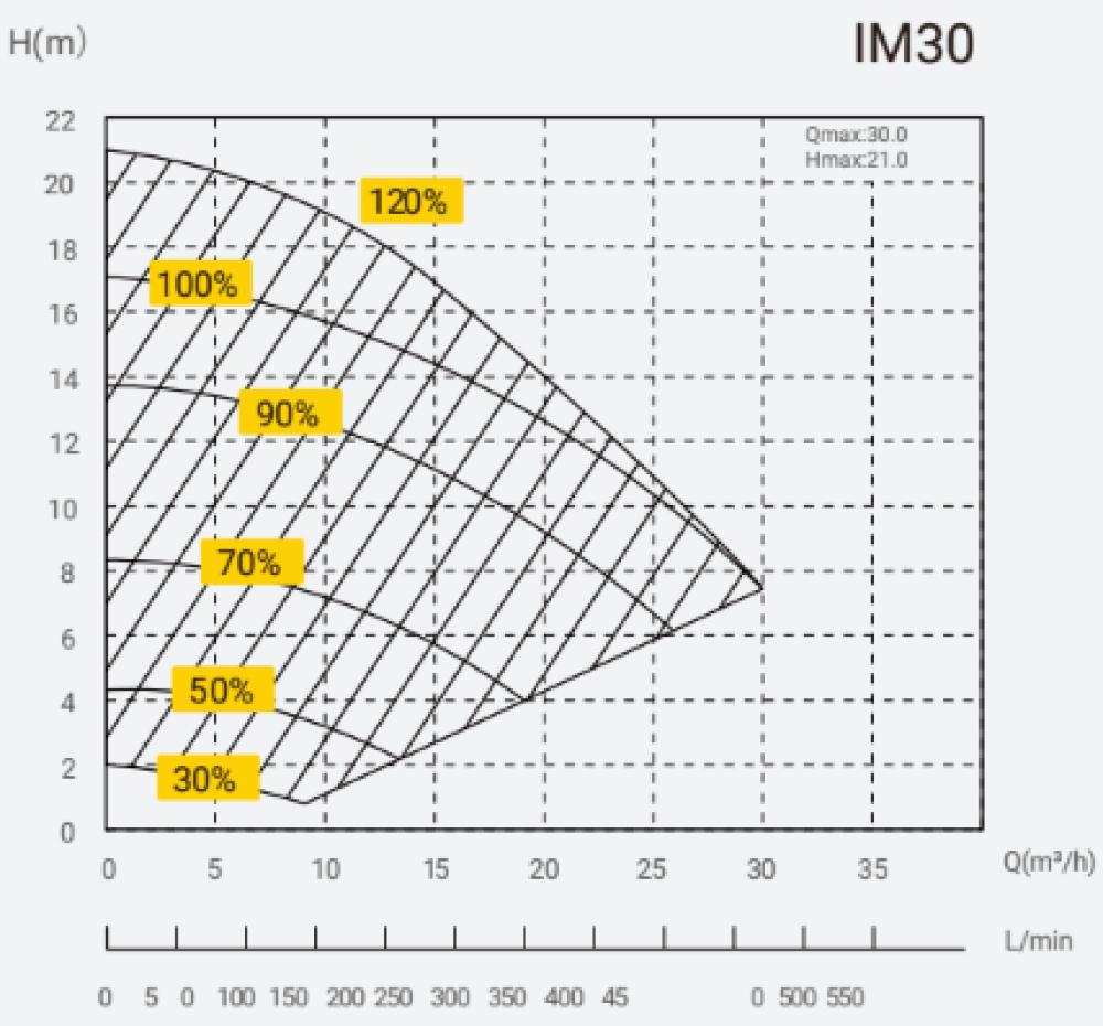 - Prietok: 30 m3 / h