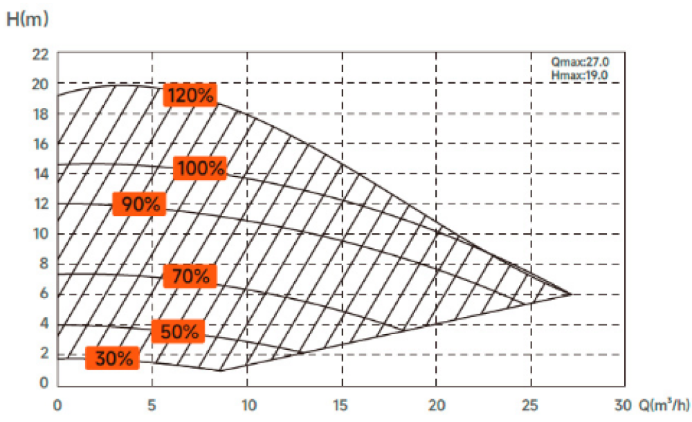 Výkonnová krivka čerpadla RAPID VICTOR (1 kW)