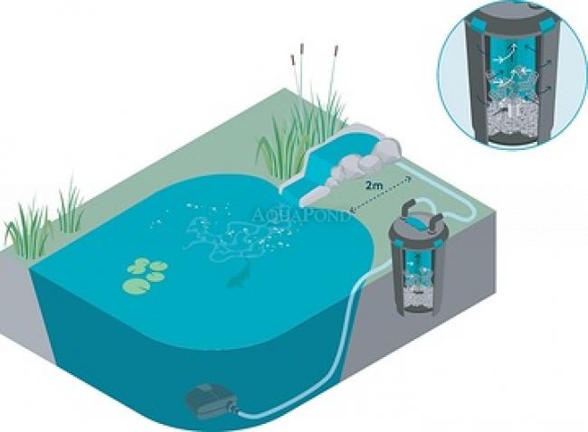 Vďaka ideálnej kombinácii filtra, čerpadla a UVC techniky zaručuje priezračne čistú vodu. Tlakový filter sa vyznačuje ľahkou údržbou, jednoduchým a spoľahlivým dizajnom, vysokou účinnosťou a nízkou spotrebou energie. Maximálne jednoduchá údržba vďaka patentovanej funkcii čistenia v kryte. Vďaka zakopaniu do zeme je takmer neviditeľné. Vhodné pre jazierka až do 4 m3. Sada pozostávajúca z tlakového filtra BioPress s integrovanou 7 W UVC lampou a vhodným čerpadlom s výkonom 2500 l / h.