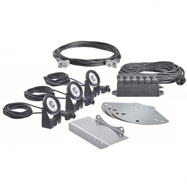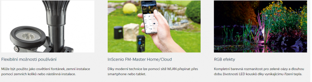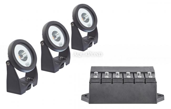 Oase Floating fountain illumination set RGB sada osvetlenia určená pre plávajúce fontány. Umožnuje efektívne nasvietenie fontány PondJet Eco a vytvorenie správnej večernej atmosféry s voliteľným farebným spektrom. Set pozostáva z 3x ProfiLux Garden LED RGB spotlight, každá so 6 W LED RGB žiarivkou, 3x držiaky svetiel, 1x nerezový držiak na upevnenie transformatora ProfiLux Garden Controller ku čerpadlu a 20 metrový prívodný napájací kábel. Ako príslušenstvo odporúčame: InScenio FM-Master WLAN EGC.