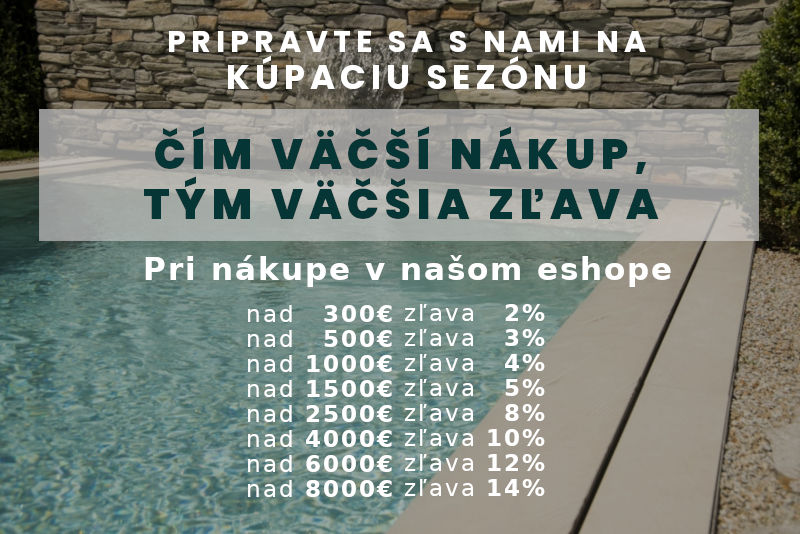 * Zľava sa nevzťahuje na bazény Compass a bazénové prestrešenia. Ďakujeme za pochopenie.