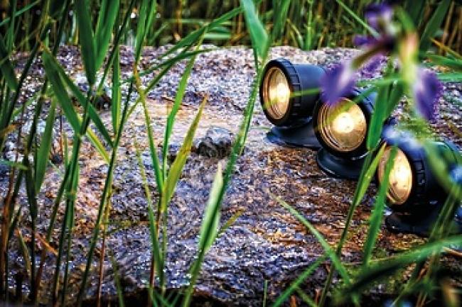 Jazierkový LED reflektor PondoStar LED Set 3 nemeckej značky Pontec, ktorý je vďaka vodotesnému obalu predurčený na osvetľovanie prvkov spod vodnej hladiny. Rovnako sa však môže použiť na nasvietenie rôznych dekoratívnych prvkov vo vašej záhrade.