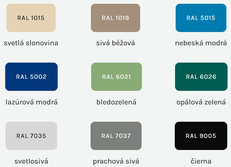 Kazeta krytu je vyrobená z hliníku a upravená práškovým lakovaním štandardne v sivej, no ak túžite po jedinečnosti, za príplatok si môžete vybrať ktorúkoľvek farbu zo vzorkovníka RAL, bronzový či sivý metalický efekt, alebo exkluzívne zrkadlové prevedenie. |