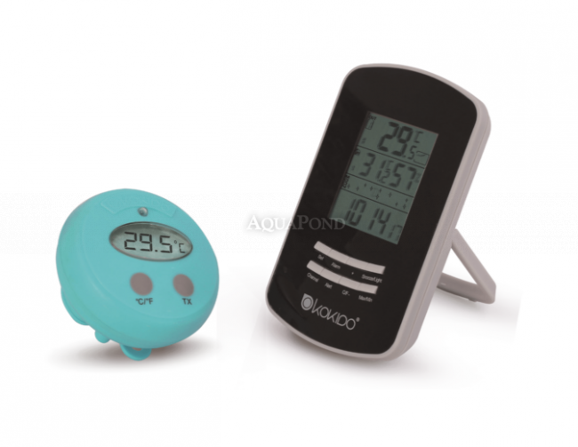 Bezdrôtový teplomer Therm'O kontroluje teplotu vody v bazéne bez toho, aby ste museli ísť von! Základňovú stanicu je možné namontovať na stenu alebo umiestniť na stôl vďaka opornej nohe. Snímač pláva v bazéne a meria teplotu vody a komunikuje so základňou. Základňová stanica zobrazuje vnútornú teplotu a vlhkosť, teplotu a zmeny teploty vody vo vonkajšom bazéne, presný čas a dokonca aj fázy mesiaca. Ciferník s lupou pre lepšiu čitateľnosť. Vybavený solárnym panelom, funguje bez batérií. Automaticky sa vypne 150 sekúnd po stlačení tlačidla napájania.