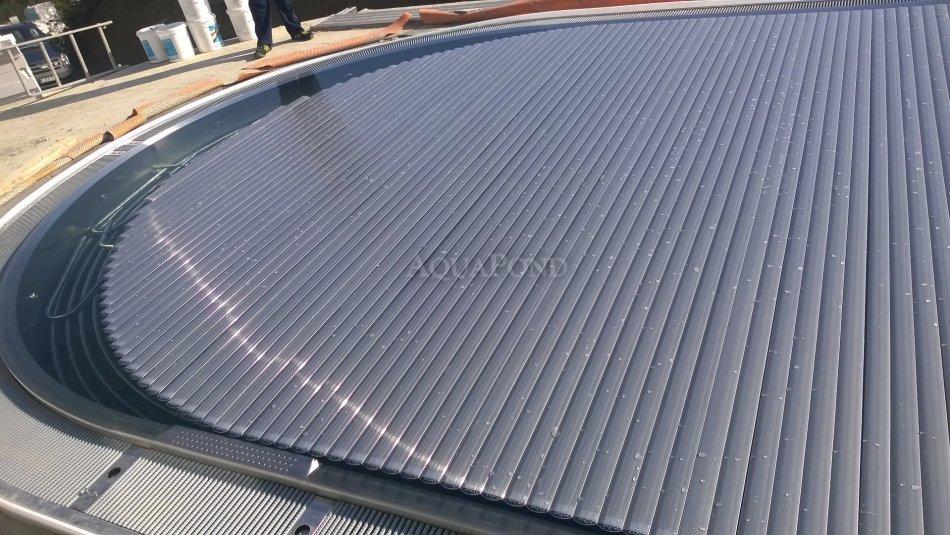 Roletový kryt Rollo Cover pre bazény Compass, je integrované lamelové zakrytie, ktoré zabezpečuje maximálnu energetickú efektívnosť a maximálnu bezpečnosť vášho bazéna. Solárne lamely zachytávajú solárnu energiu a zabezpečujú tak ohrev vody v bazéne o 4 až 8 °C, v závislosti na ročnom období a geografickej polohe.
