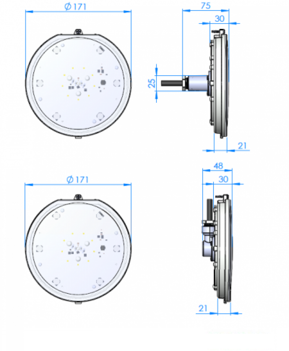 Lampa s LED diódami LumiPlus Flexi studené biele svetlo. Je kompatibilný so všetkými dostupnými riadiacimi systémami pre reflektory AstralPool LED. Lampy sú dodávané s odnímateľným káblom o dĺžke 2,5 m.Transformátor nie je súčasťou dodávky. Použitie iba v systéme LumiPlus Flexi. Vonkajšie rozmery Ø 171 x 48 mm.