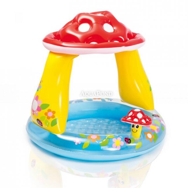 Detský nafukovací bazén v designu muchotrávky, v ktorom si užijete v horúcich letných dňoch veľa zábavy a príjemného osvieženia. Nafukovacia strieška chráni dieťa pred slnečnými lúčmi. Mäkká nafukovacia podlaha zaistí bezpečné a pohodlné hranie.