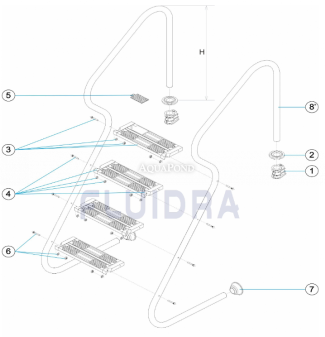 Náhradné diely pre Astralpool šikmé schodíky Residencial 4 stupne