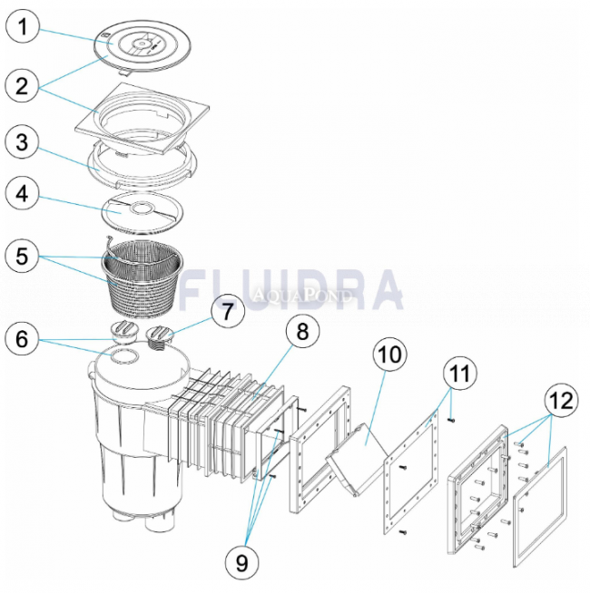 Náhradné diely pre Astralpool Skimmer 17,5 l s dlhým hrdlom a štvorcovým vekom - farba slonová kosť (RAL1015)