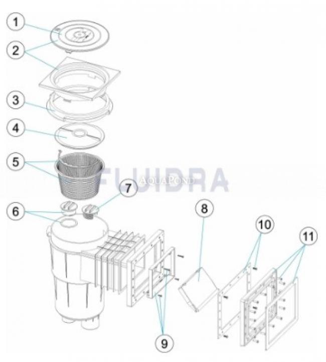 Náhradné diely pre Astralpool Skimmer so štandardným hrdlom s ozdobným rámčekom